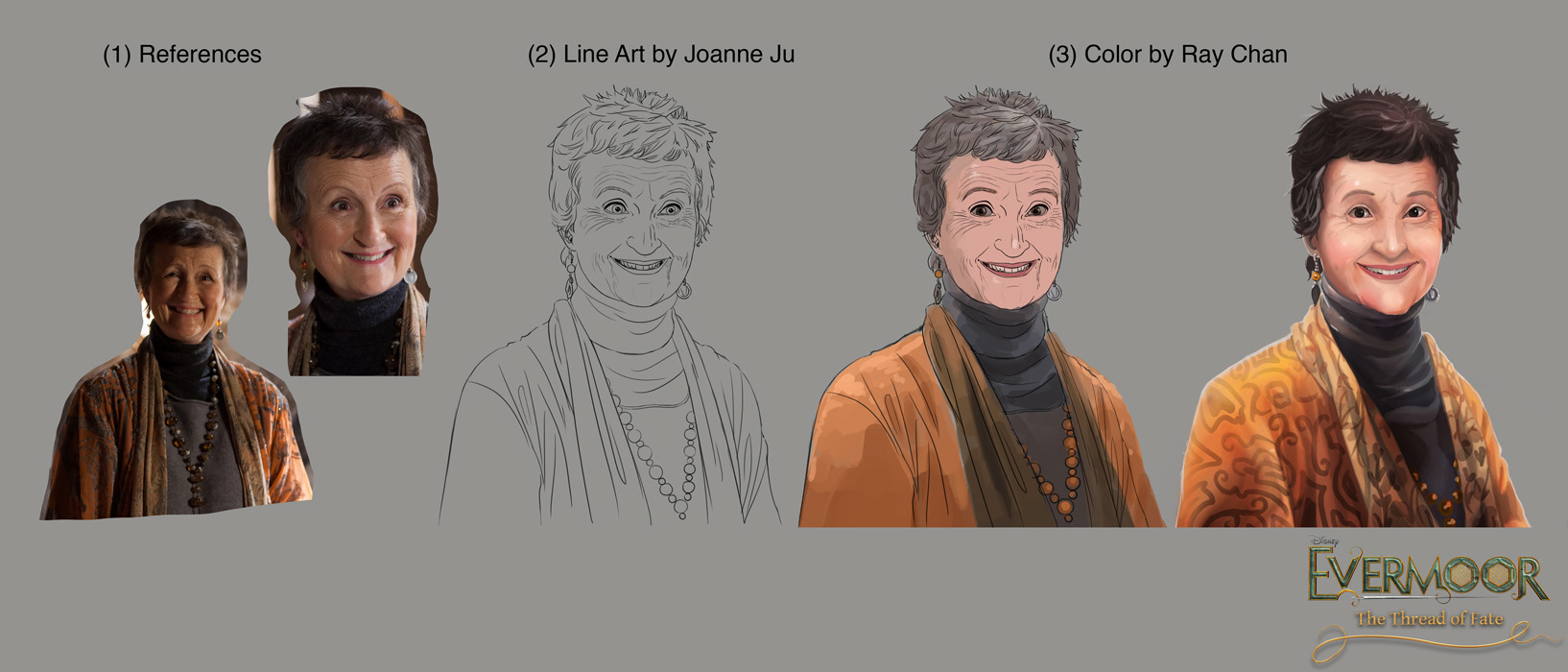So during the last stage of revision, Joanne first drew the portrait in most realistic way possible, then Ray exaggerated her features after.